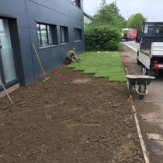 We have recently been busy with plenty of turfing jobs, despite the dry weather. This is a shot of us turfing at Cotswold Homes new office in Yate. We also carried out spraying and hedge trimming on this site.