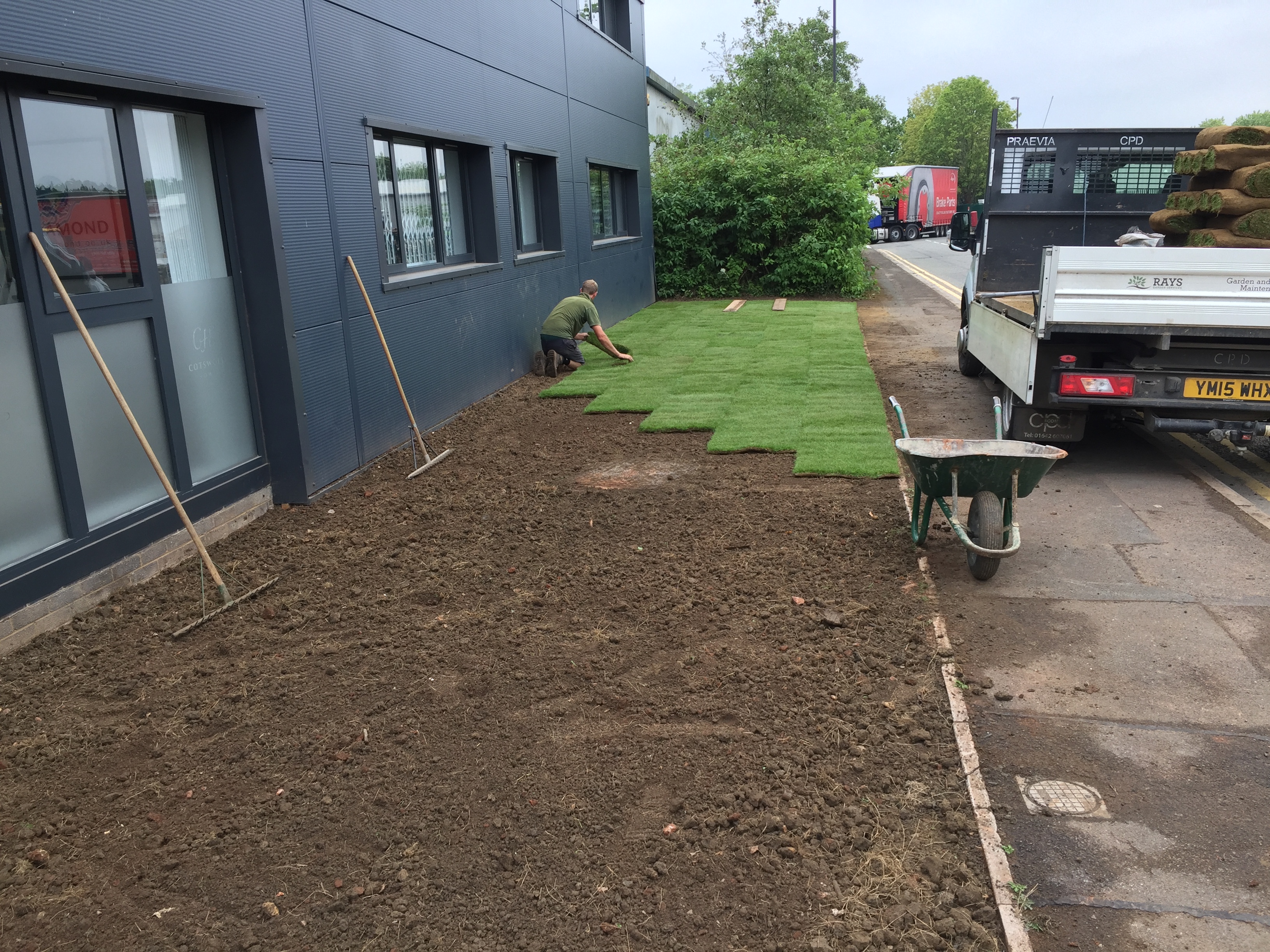 This is a shot of us turfing at Cotswold Homes new office in Yate. We also carried out spraying and hedge trimming on this site.